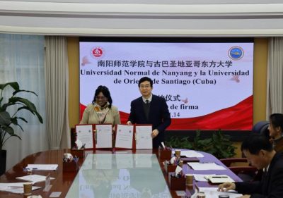 Como parte de su recorrido visitó la Universidad Normal de Nanyang donde se efectuó la ceremonia de firma de la institución educativa conjunta chino-extranjera de la Universidad de Oriente, Santiago de Cuba, la Firma del Convenio de Colegio Internacional.