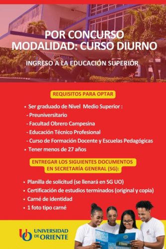 La Universidad de Oriente informa a todos los interesados que el proceso de ingreso para las modalidades de Curso por Encuentro (CPE) y Educación a Distancia (CaD) se desarrolla actualmente según lo previsto en el cronograma oficial de marzo y abril de 2026.